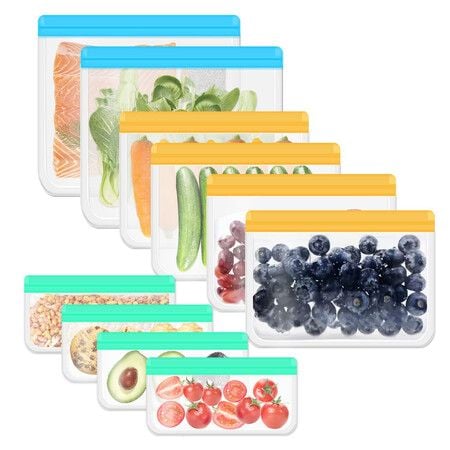 10 Pack Large Reusable Food Storage Bags Stand Up, Reusable Sandwich Gallon Freezer Bags Snack Bags for Meat Fruit Cereal Snacks