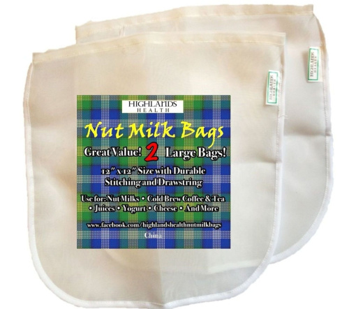Highlands Health Nut Milk Bags - 2 Large 30cm x Reusable Commercial Grade Fine Nylon Mesh Pulp Free Almond Tea and Cold Brew Coffee Filter Juice Yoghurt Strainer Cheesecloth Quality And More