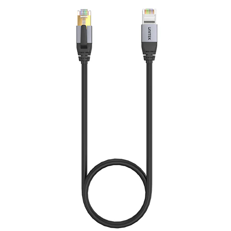 Unitek C18149AGY03-1M Cat8 RJ45 Patch Cable - 1m - Black SSTP - 26AWG - Up to 40 Gigabit Ethernet - 2000MHz - Gold-Plated Shielded RJ45 Connectors - RoHS Compliant - PoE Compatible