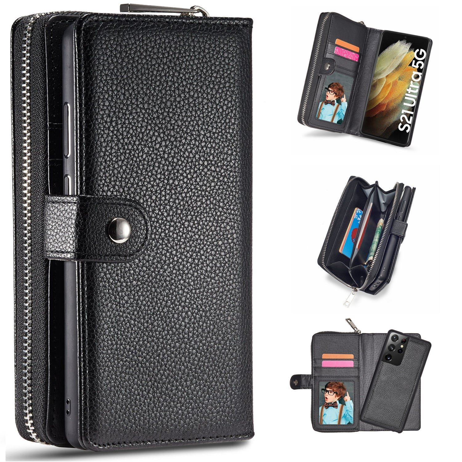 Samsung Galaxy S21 Ultra Zipper Wallet Case Black