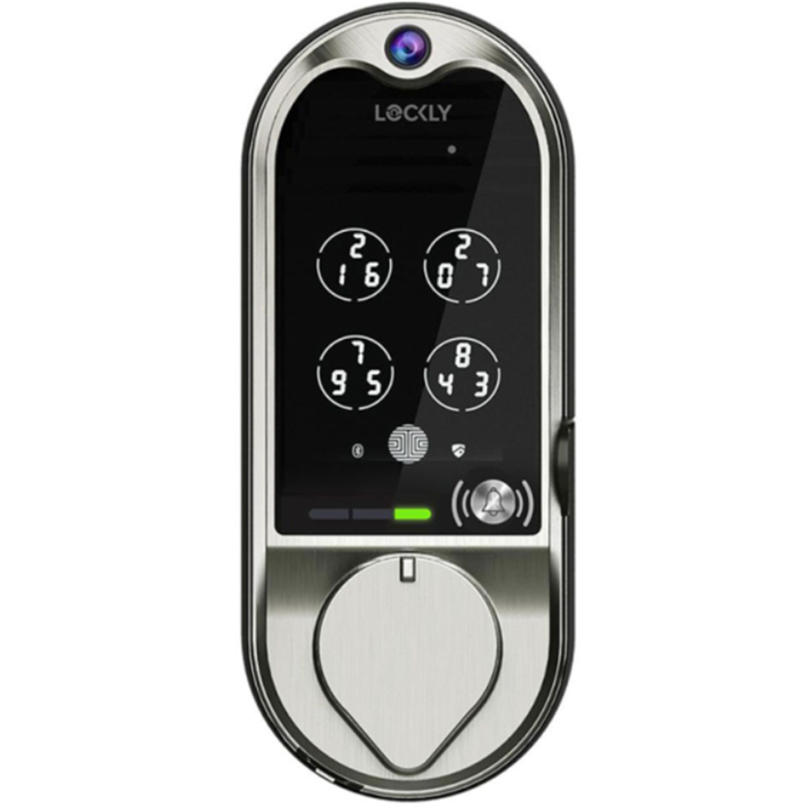 Lockly Vision Smart Latch Video Lock - Satin Nickel Built-in Video Doorbell / 3D Fingerprint / RFID / Fob Key / 2-way Audio / Includes WiFi & Door Sensor