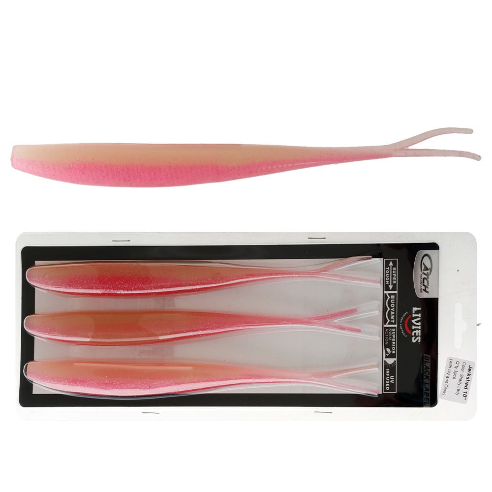 Catch Black Label Livies Jerkshad Soft Bait 10in Shady Lady Glow Qty 3