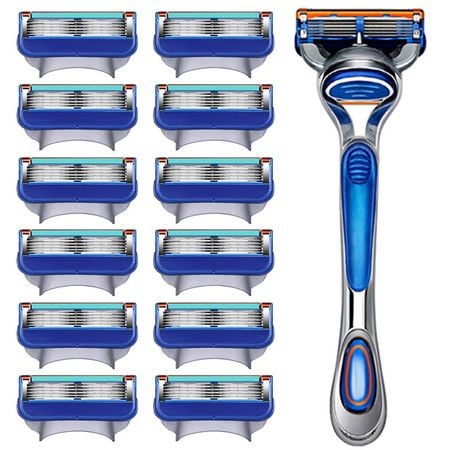 5 Men Razor Blades Shaving Cassettes Facial Care Men Shaving Blades Compatible 12 Blade Refills, Shave Kit