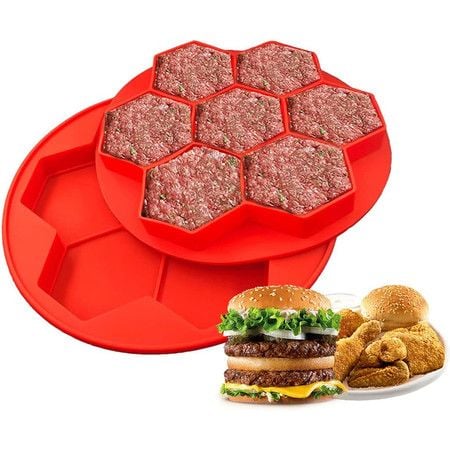 Hamburger Patty Maker, Silicone Hamburger Press and Freezer Container, 7 in 1 Small Mold, Meat Slider Trays, Ground Meat Freezer Storage Containers