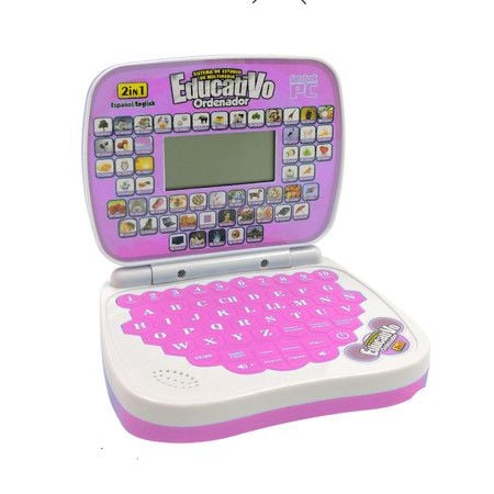 Pink-Bilingual Spanish English Learning Small Laptop Toy with Screen,Educational Computer to Learn Alphabet ABC,Numbers,Words,Spelling,Maths,Music.