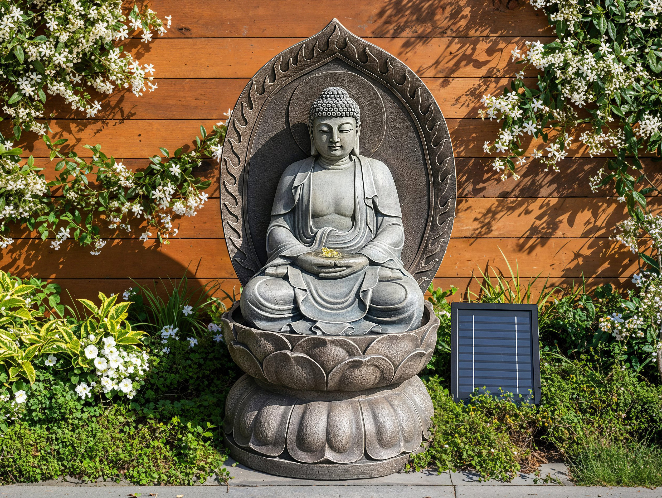 Buddha Solar Fountain with Pump & Light in Home & Outdoor Living > Outdoor Decor > Water Features
