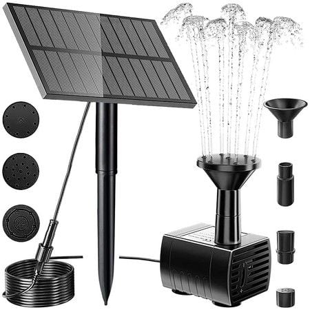 7-Nozzle Solar Fountain Pump Kit for Outdoor Bird Baths, Gardens, Pools, and Fish Tanks