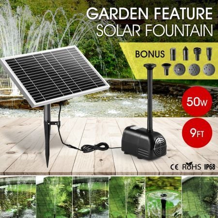 50W Solar Powered Fountain Water Pump for Birdbath Fish Pond Garden Pool