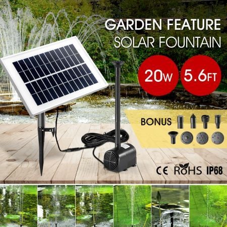 20W Solar Powered Fountain Water Pump for Outdoor Garden Pond Pool