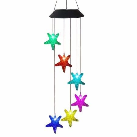 Solar Starfish Wind Chimes LED Hanging Windchimes String Lights Color-Changing WaterproofOutdoor