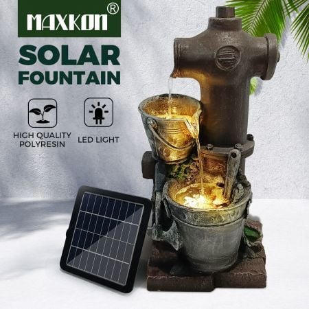 Solar Powered Water Fountain Outdoor Garden Features Cascading Bird Bath LED Indoor Backyard Pond