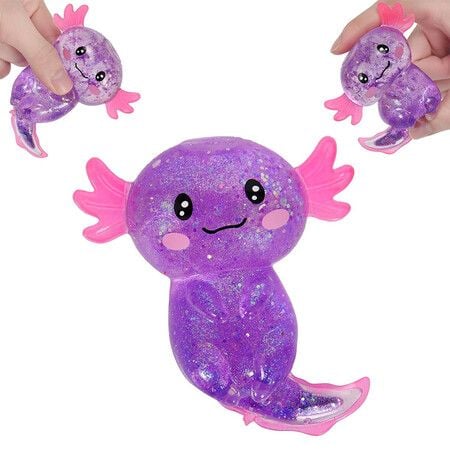 Axolotl Squishy Stress Relief Toy Glitter Fidget Toys Cute Malt Sugar Axolotl for Kids Youth Men Women, Party Favors Anxiety Relief Squishy Toys, Purple