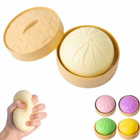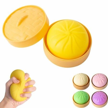 Dumpling Squishy,Mystery Squishy Dumpling Box,Fidget Toys,Easter Basket Stuffers,Stocking Stuffers,Sensory Stress Ball Squeeze Toys (Yellow)