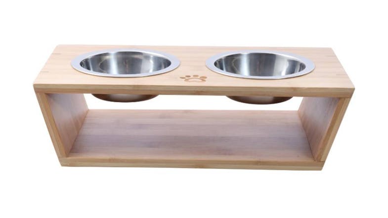 Charlie's Raised Bamboo Pet Feeding Station with Stainless Steel Bowls