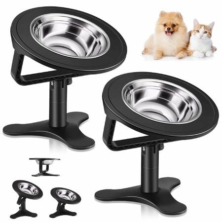 Elevated Cat Bowls with Adjustable Stand,15 Degree Tilted Stainless Steel Non-Slip Feeder for Indoor Cats (Black)