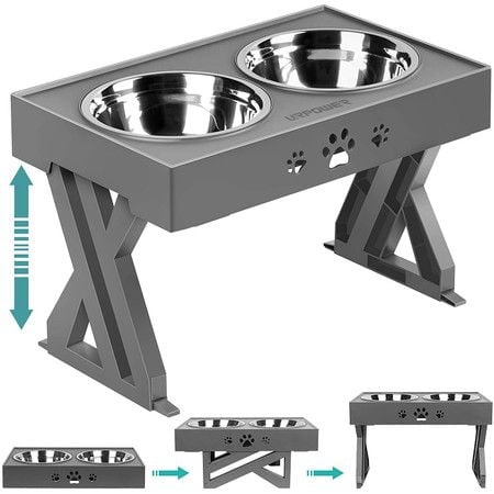 Elevated Dog Bowls Adjustable Raised Dog Bowl with 2 Stainless Steel 1.5L Dog Food Bowls
