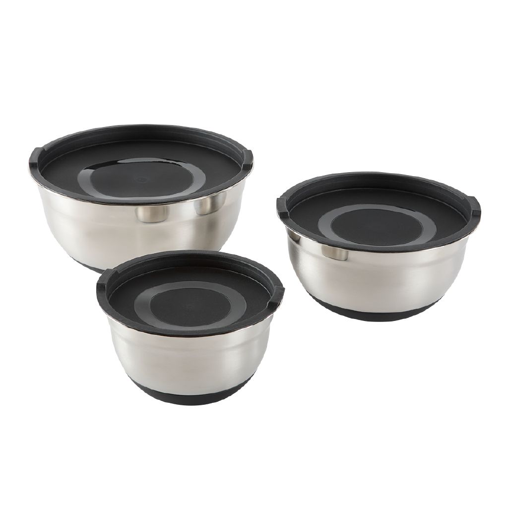 Living & Co Non Slip Stainless Steel Mixing Bowls with Lid 3 Pack