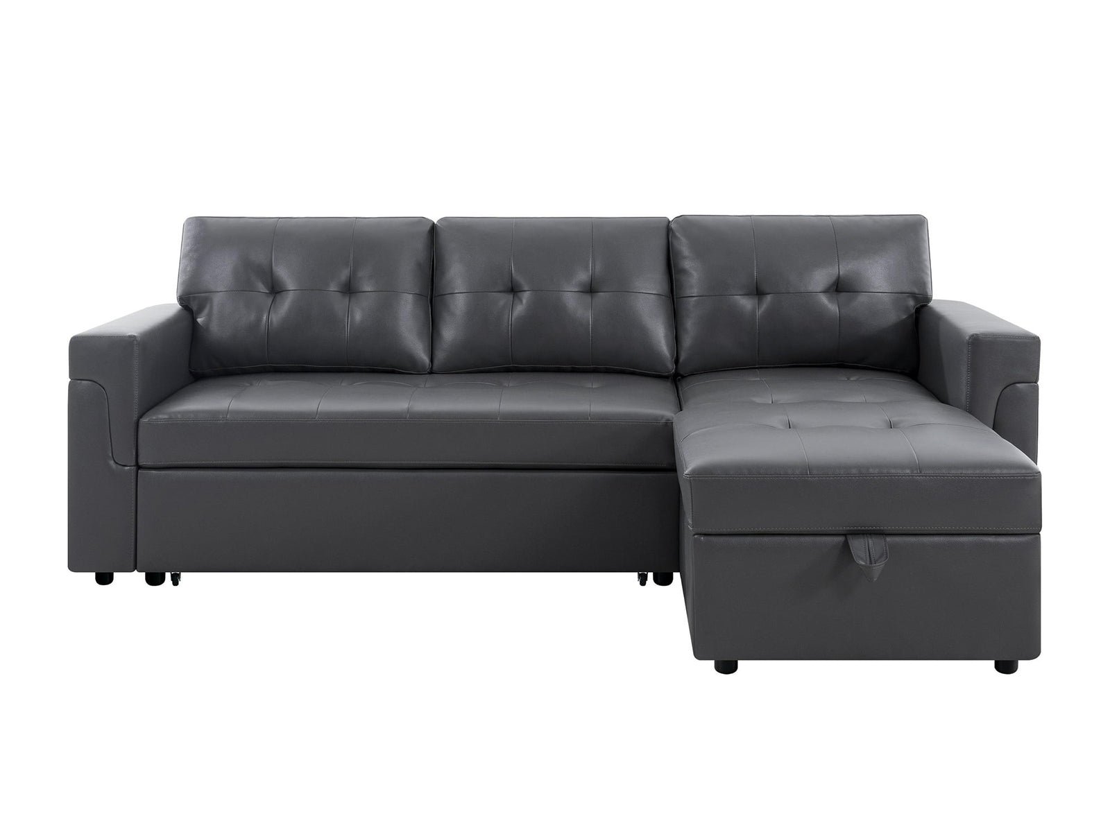 DS Novia Pull-out Sofa Bed with Storage Chaise PU Dark Grey