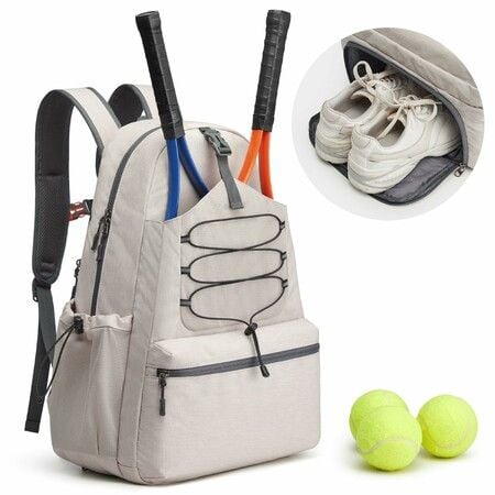 Tennis Bag,Tennis Backpack for Women Men, Large Pickleball Bag,Holds 4 Rackets with Shoe-Color: Ivory