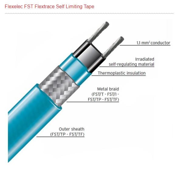 Flexelec FS0/30-2 Self Limiting Heat Trace Cable 30w/mt 230vAC - Defrost Heater Tape - FSO30-2