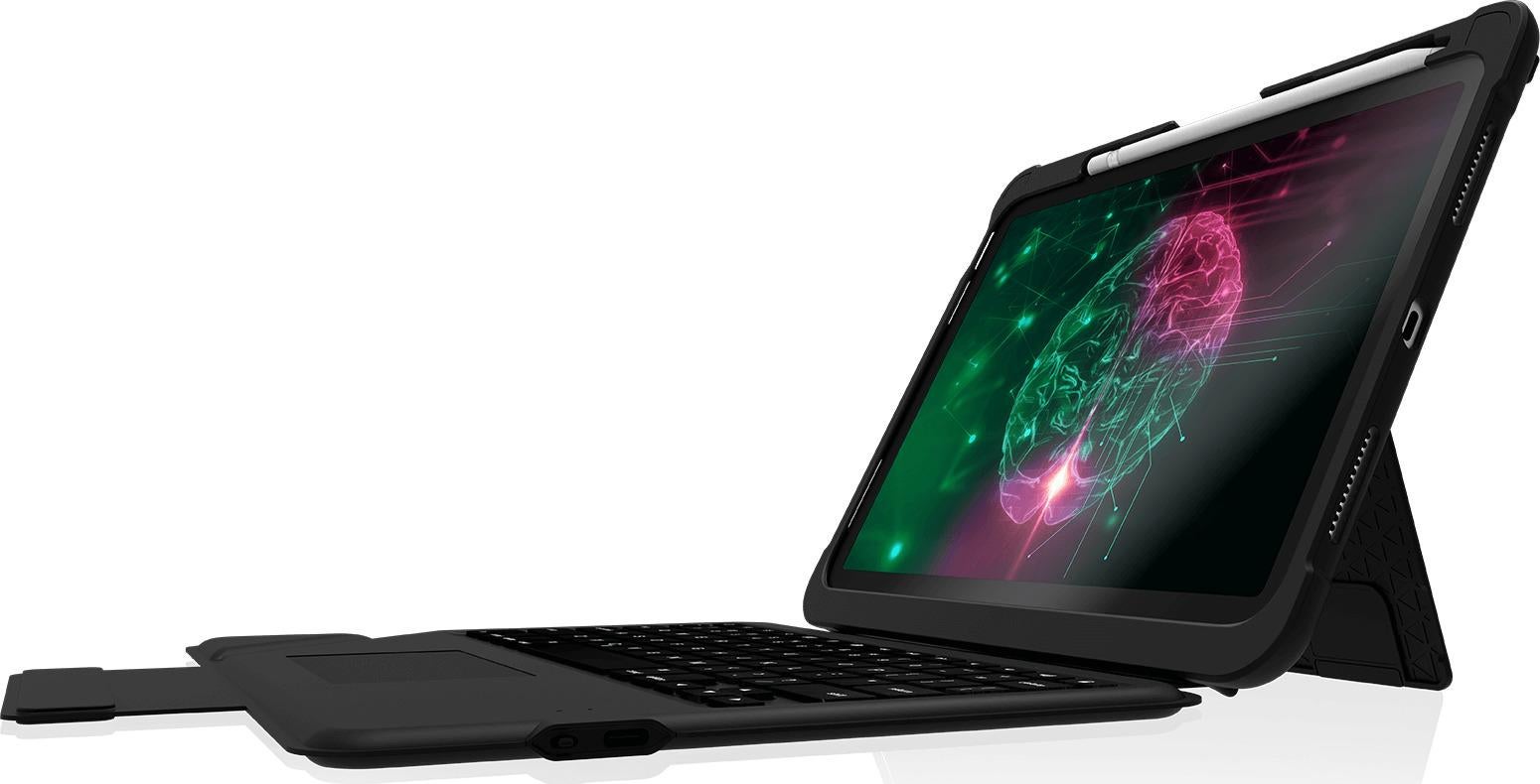 STM Dux Rugged Trackpad Bluetooth Keyboard Case for iPad 11 A16 & 10th Gen 10.9 (2022) - Black - A brilliantly designed Bluetooth keyboard case, with rugged bump protection, Apple Pencil 1 storage, and full-function trackpad