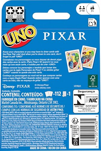 Mattel Games UNO Pixar Card Game for Kids, Adults & Family, Deck with Graphics Rule Inspired by Movie Characters