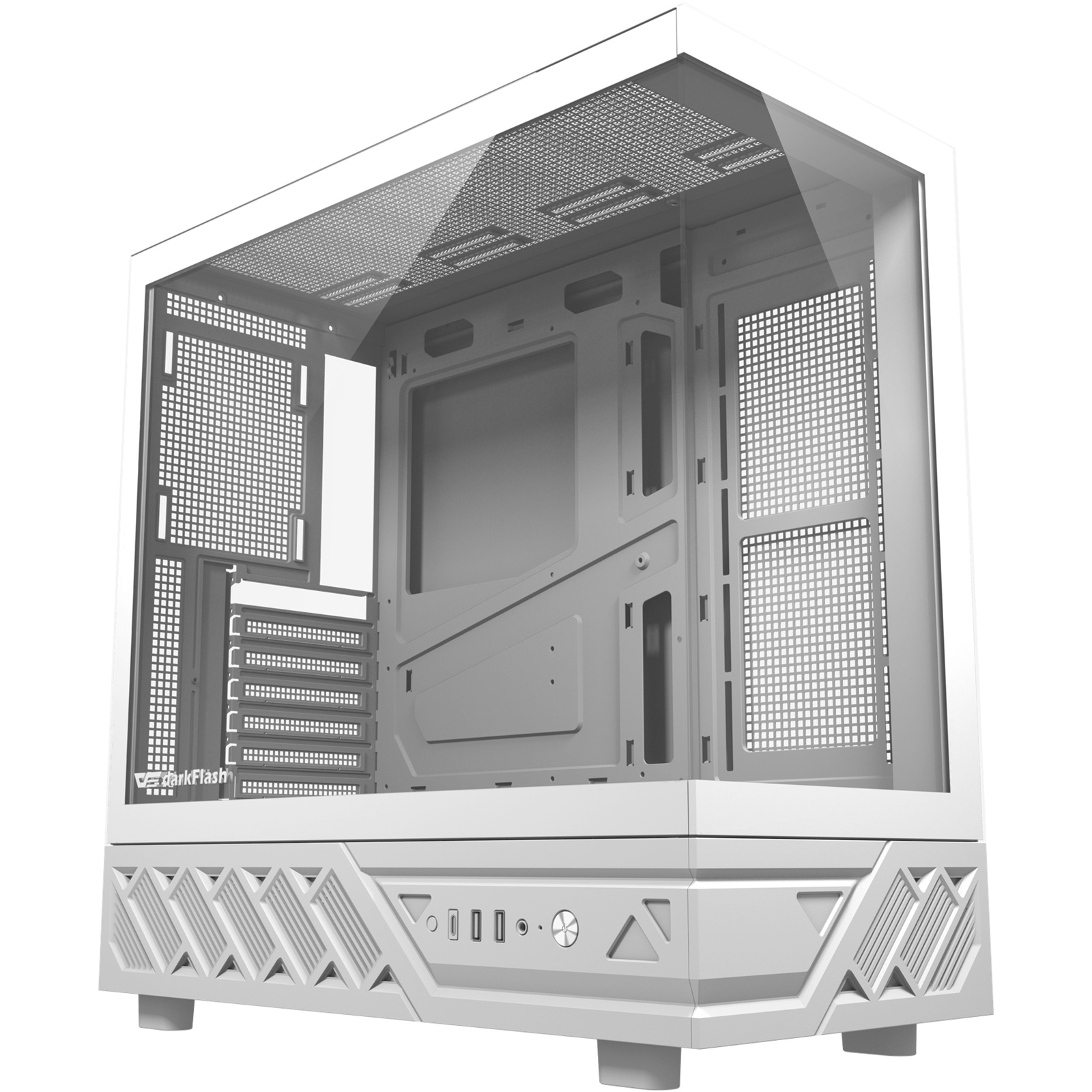 DARKFLASH C280 Dual Chamber Tempered Glass EATX Mid Tower Case - White 7x ARGB Fans - CPU Cooler Support up to 155mm - GPU Support up to 420mm - 7x PCI Slots - 360mm Radiator Support - Front I/O: 3x USB - HD Audio