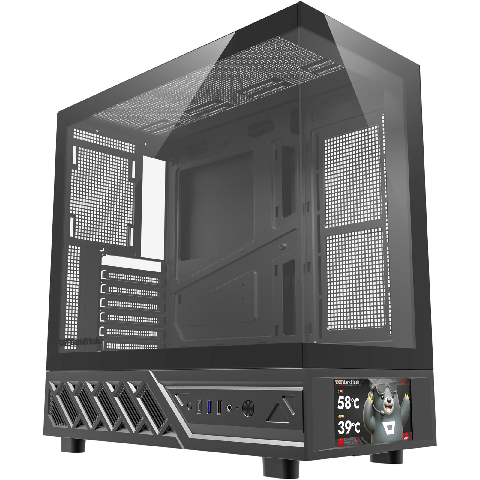 DARKFLASH DS950 Tempered Glass ATX Mid Tower Case - Black with Screen 6x ARGB Fans - CPU Cooler Support up to 180mm - GPU Support up to 400mm - 7x PCI Slots - 360mm Radiator Support - Front I/O: 2x USB - 1x USB-C - HD Audio