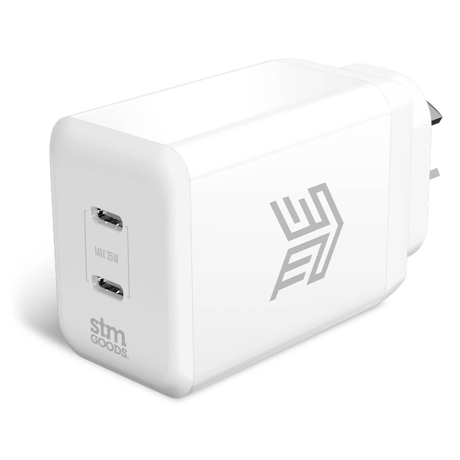 STM 35W Dual Port USB-C GaN Charger - White for SmartPhones & Tablets (Charger Only / No Cable Included)