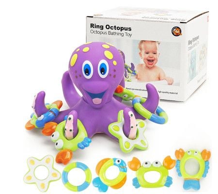 Octopus Floating Crab Bath Toy 5 Hoopla Rings Interactive Water Play Children Fun Splash Time Engaging Activity Purple