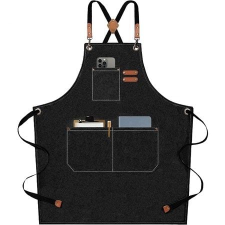 Waterproof Chef Aprons for Men Women with Large Pockets Cotton Canvas Cross Back Adjustable Work Apron Size M to XXL(Black)