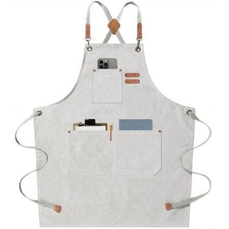 Waterproof Chef Aprons for Men Women with Large Pockets Cotton Canvas Cross Back Adjustable Work Apron Size M to XXL(Beige)