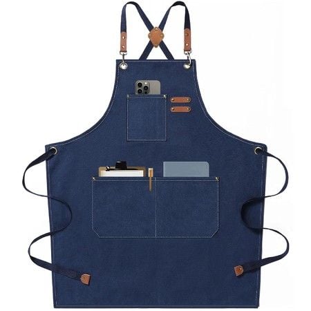 Waterproof Chef Aprons for Men Women with Large Pockets Cotton Canvas Cross Back Adjustable Work Apron Size M to XXL(Darkblue)