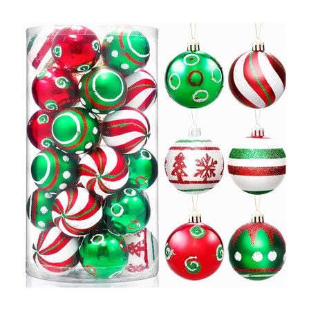 30 Pieces Christmas Ball Ornaments for Christmas Tree, Red Green and White Painting Christmas Tree Decoration for Christmas Tree Decoration