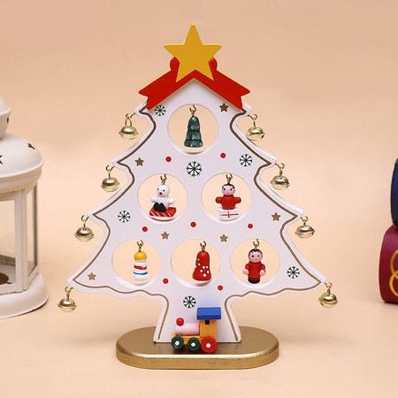 1 Pack Wooden Christmas Tree Tabletop Decoration Mini Ornaments for Festive Desktop (White)
