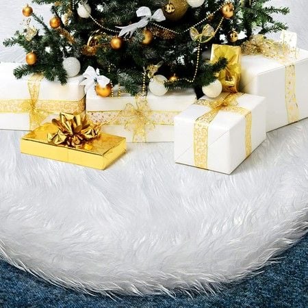 Christmas Tree Skirt,48 Inch White Soft Faux Fur Tree Skirts Plush Christmas Decorations,White Ornaments Christmas Tree Skirts Xmas Decorations Holiday Party Decor
