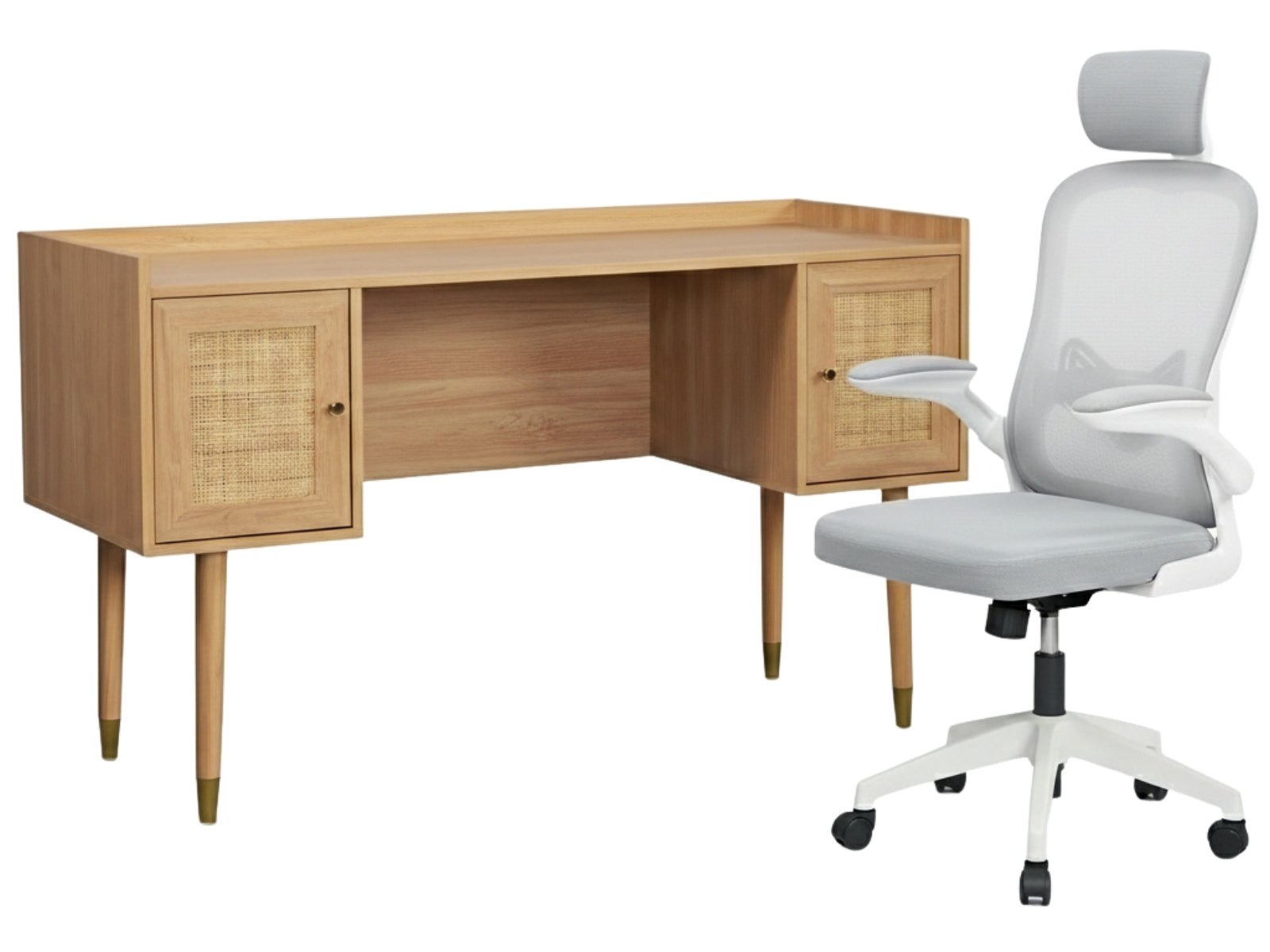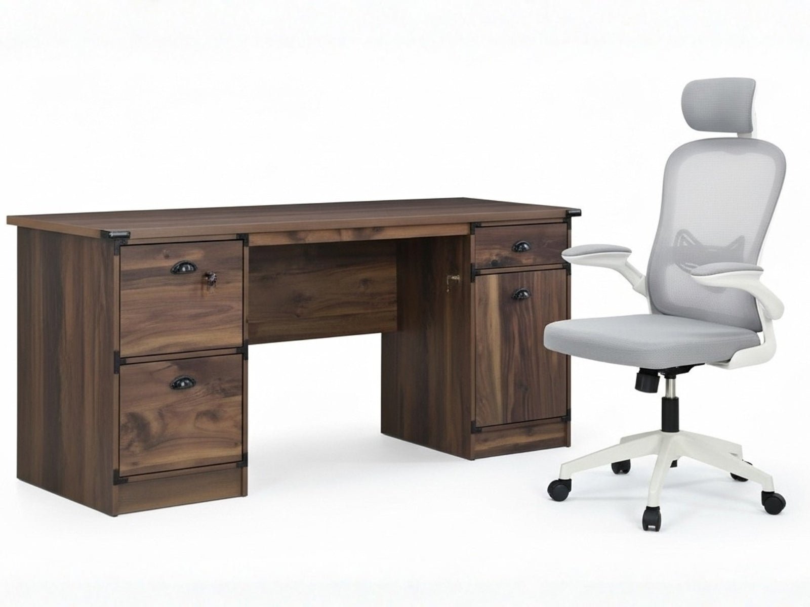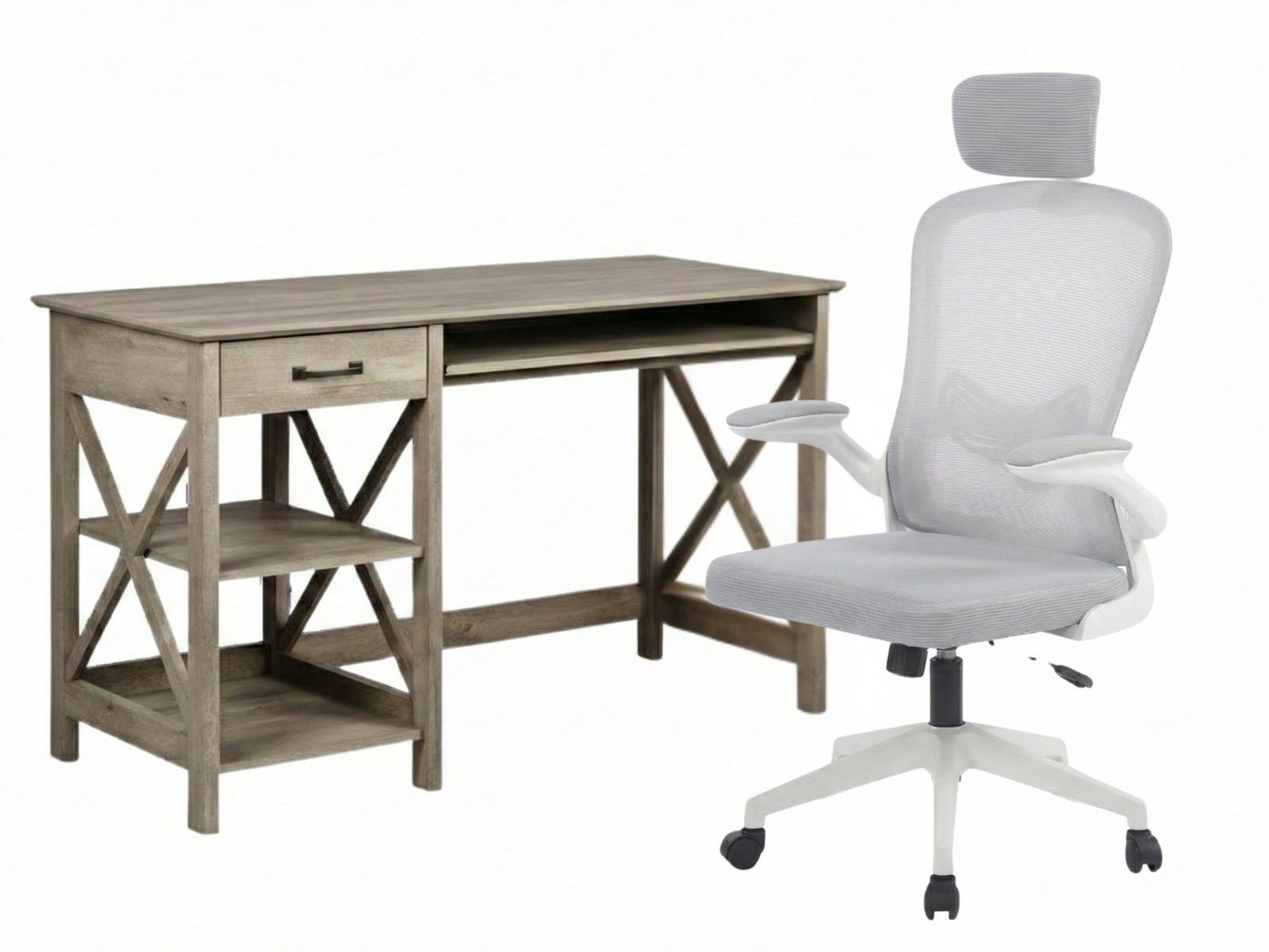 Home Office Desk with Storage Grey & Molina Mesh Task Chair White+Grey (Combo)