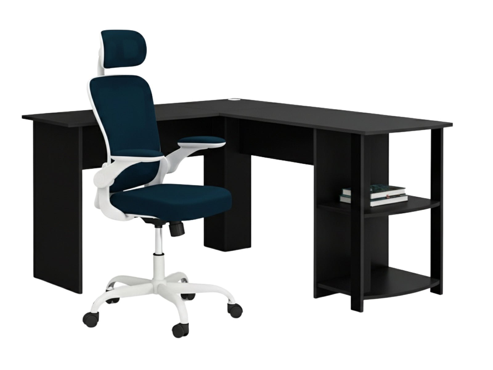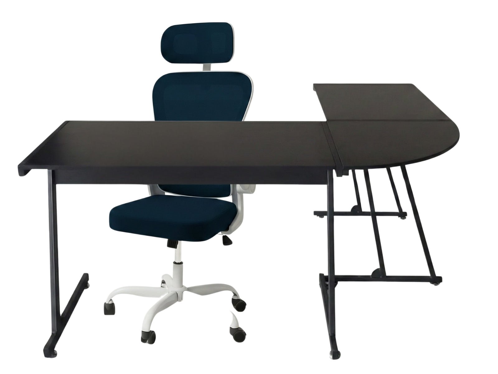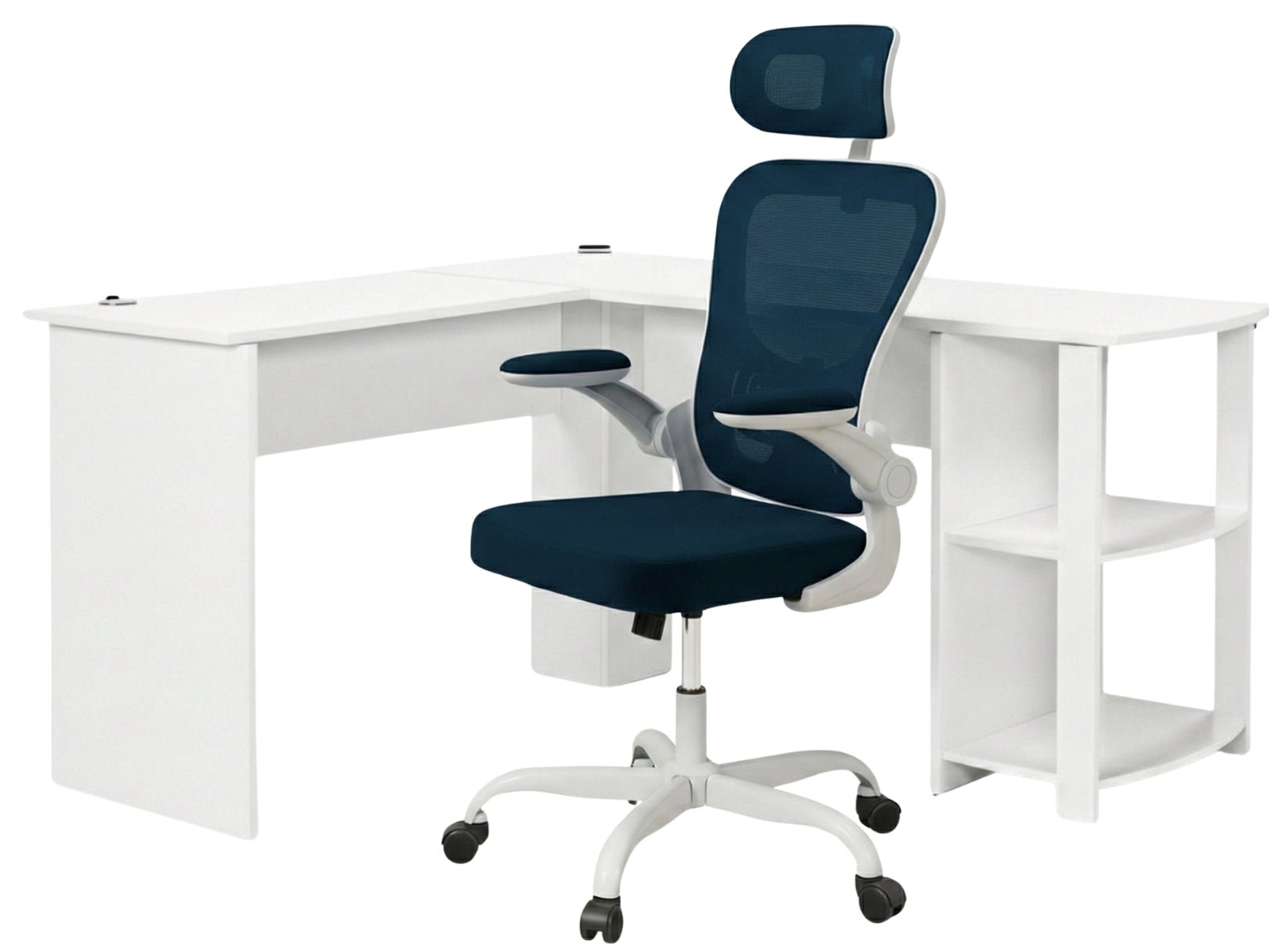 Corner Desk & Molina Mesh Task Chair White+Blue (Combo)