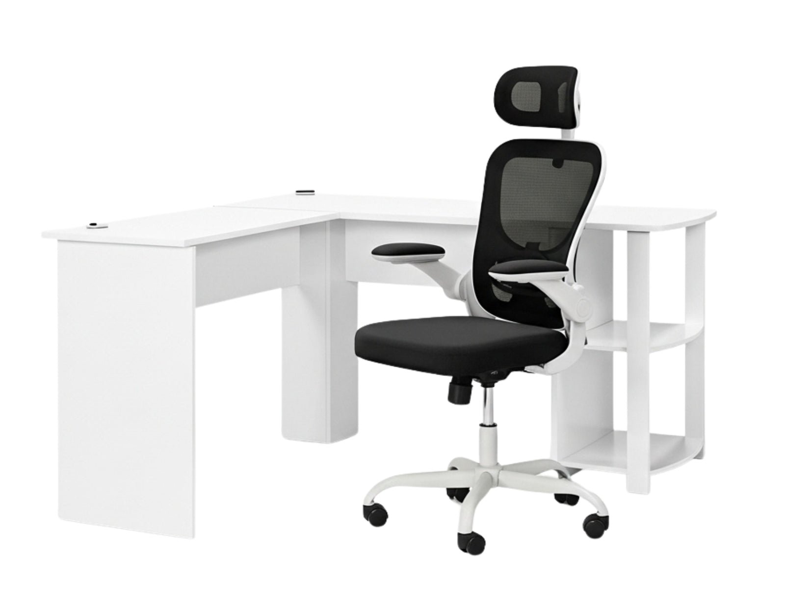 Korr Corner Office Desk & Molina Mesh Task Chair White+Black (Combo)