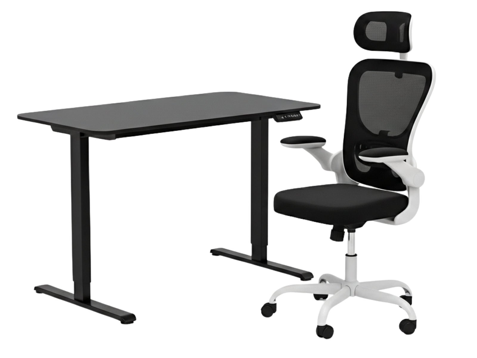 Height Adjustable Desk Set LK All Black & Molina Mesh Task Chair White+Black (Combo)