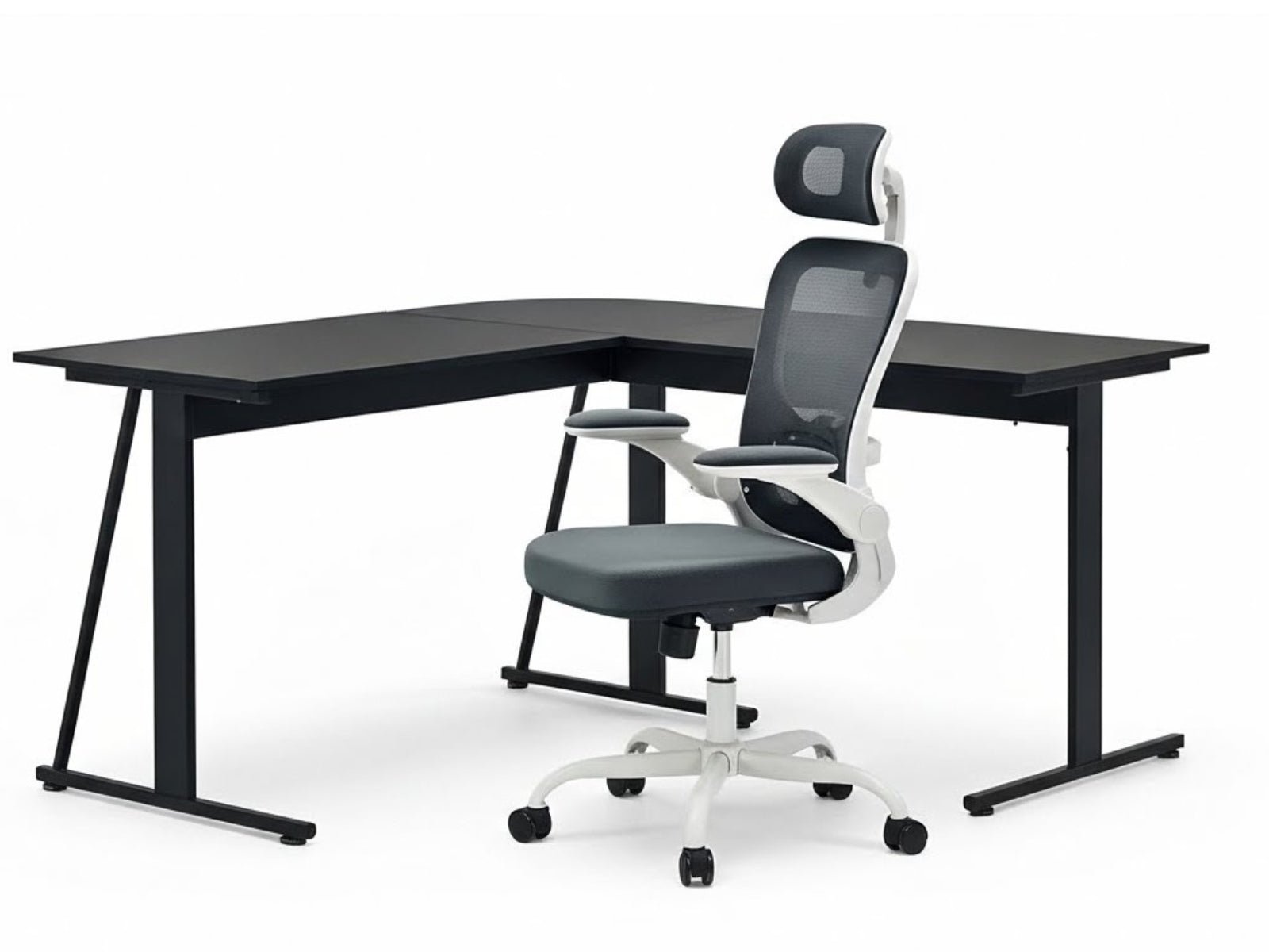 Corner Desk & Molina Mesh Task Chair White+Grey (Combo)
