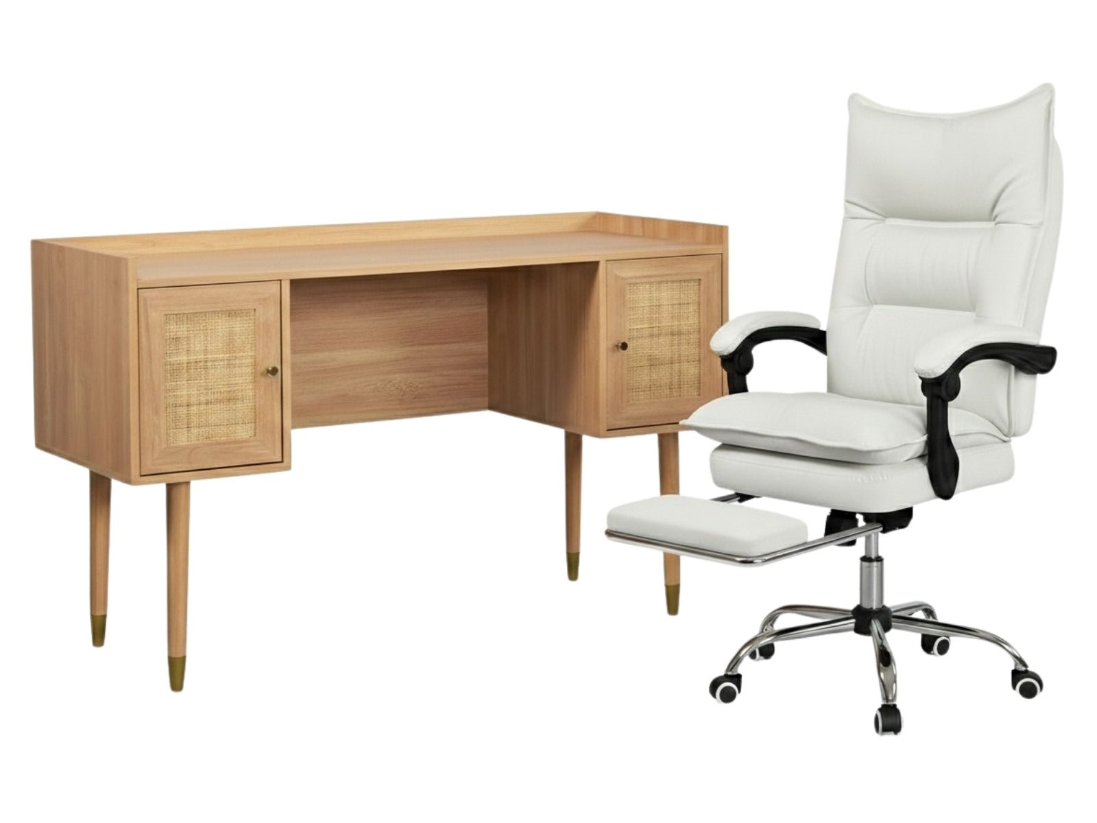 Naturlig Writing Desk & New Markus Office Chair with Footrest PU White (Combo)