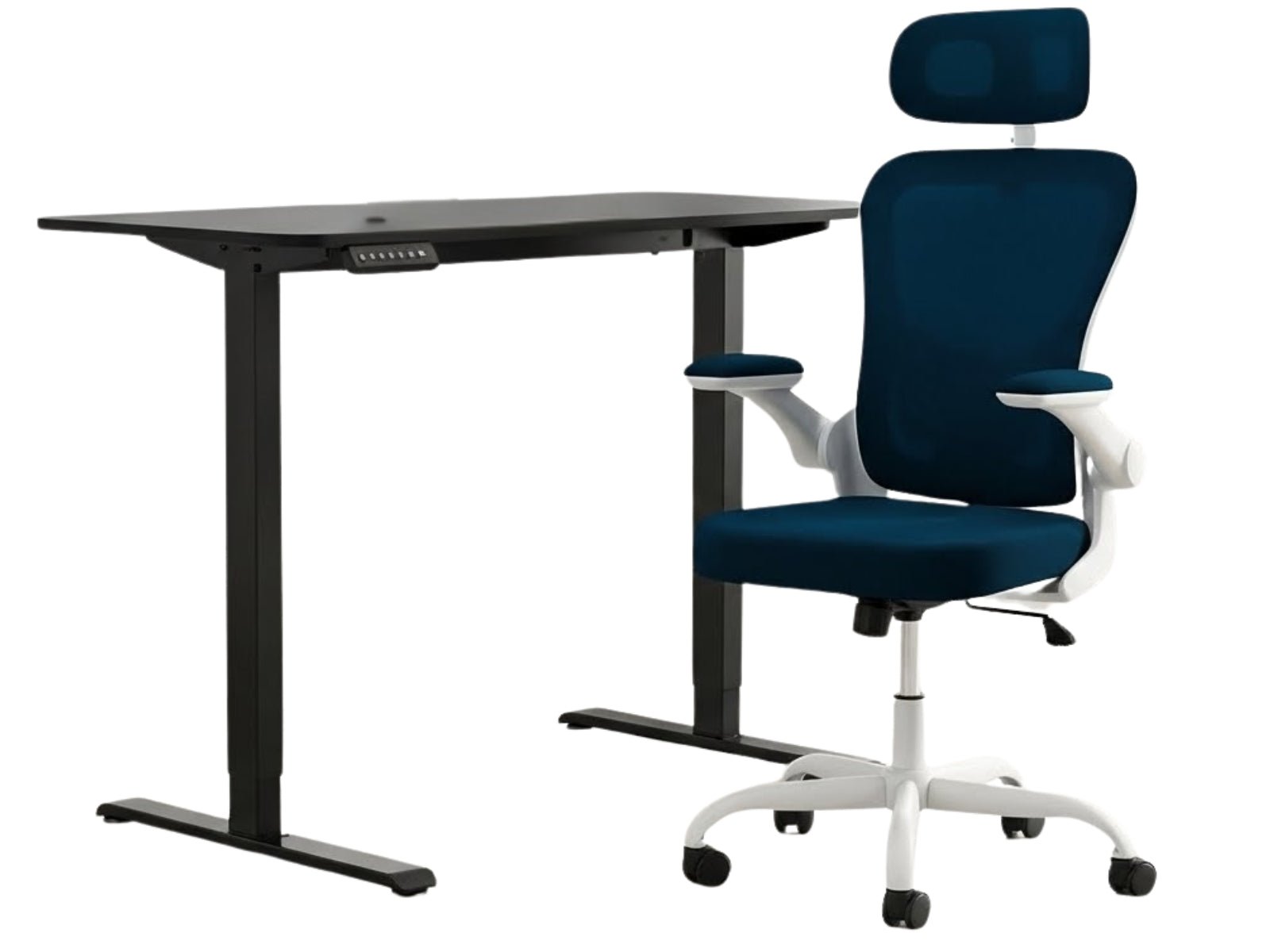 Height Adjustable Desk Set LK All Black & Molina Mesh Task Chair White+Blue (Combo)