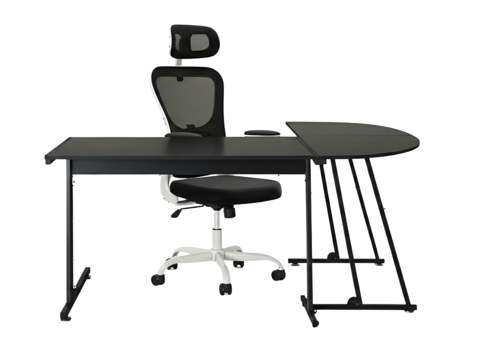 Corner Desk & Molina Mesh Task Chair White+Black (Combo)