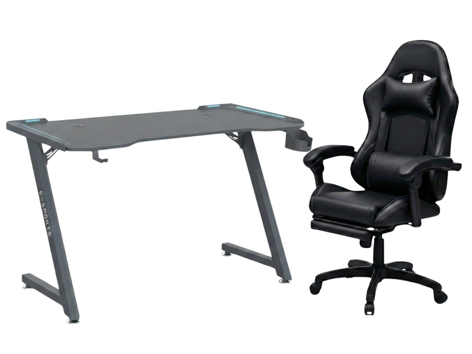 Gaming Table KZ-1 120cm with Wireless Charger and Mouse Pad & Faron Gaming Chair PVC Black (Combo)