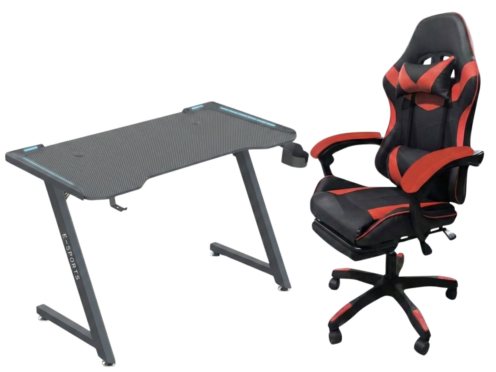 Gaming Table KZ-1 120cm with Wireless Charger and Mouse Pad & Faron Gaming Chair PVC Red (Combo)