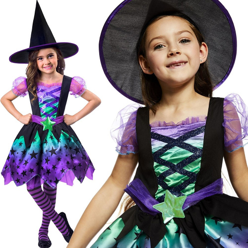Fiestas Guirca 77623 Witch Costume Dress with Print and Witch Hat Girls